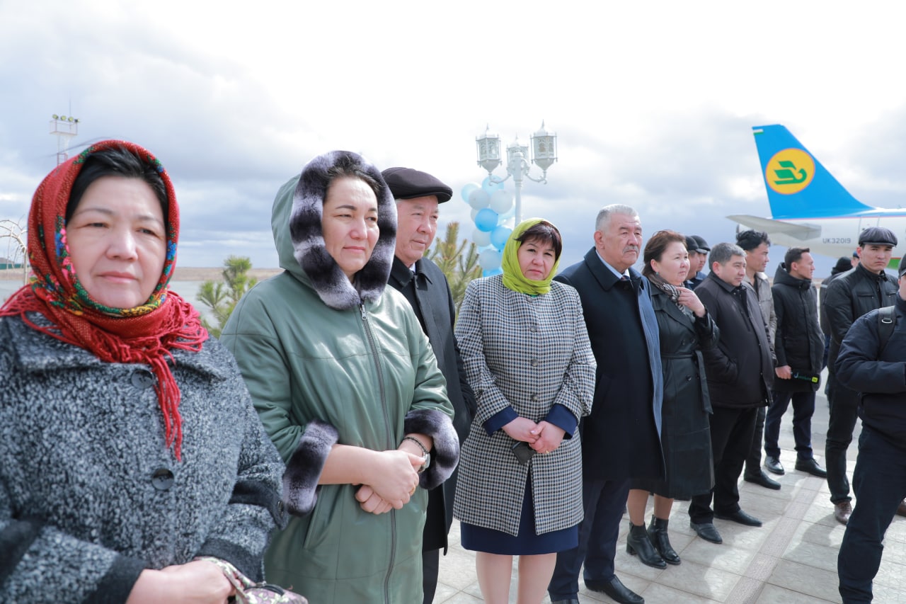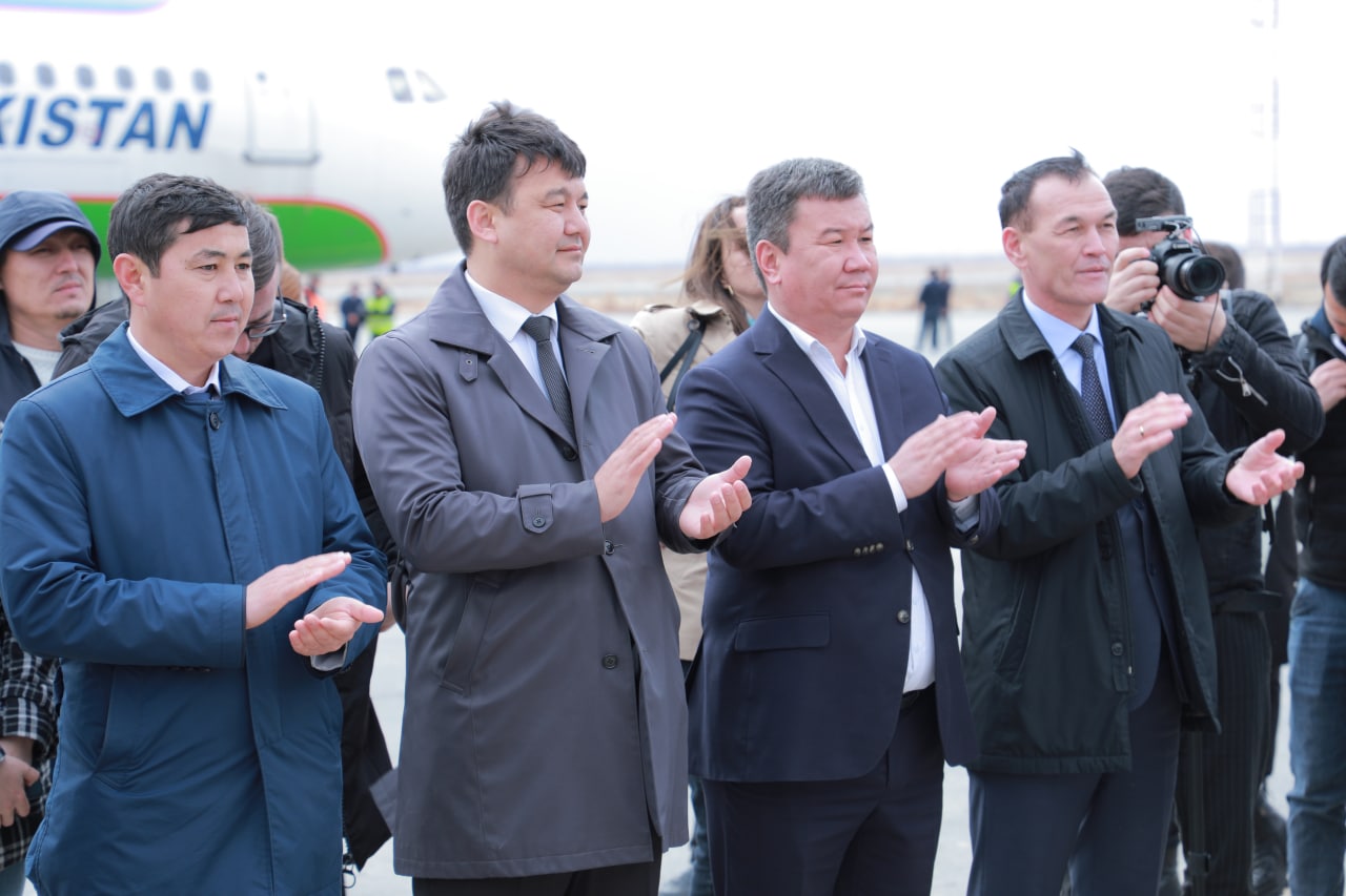 Дәслеп Мойнақ аэропортында мийманлар күтип алынды.