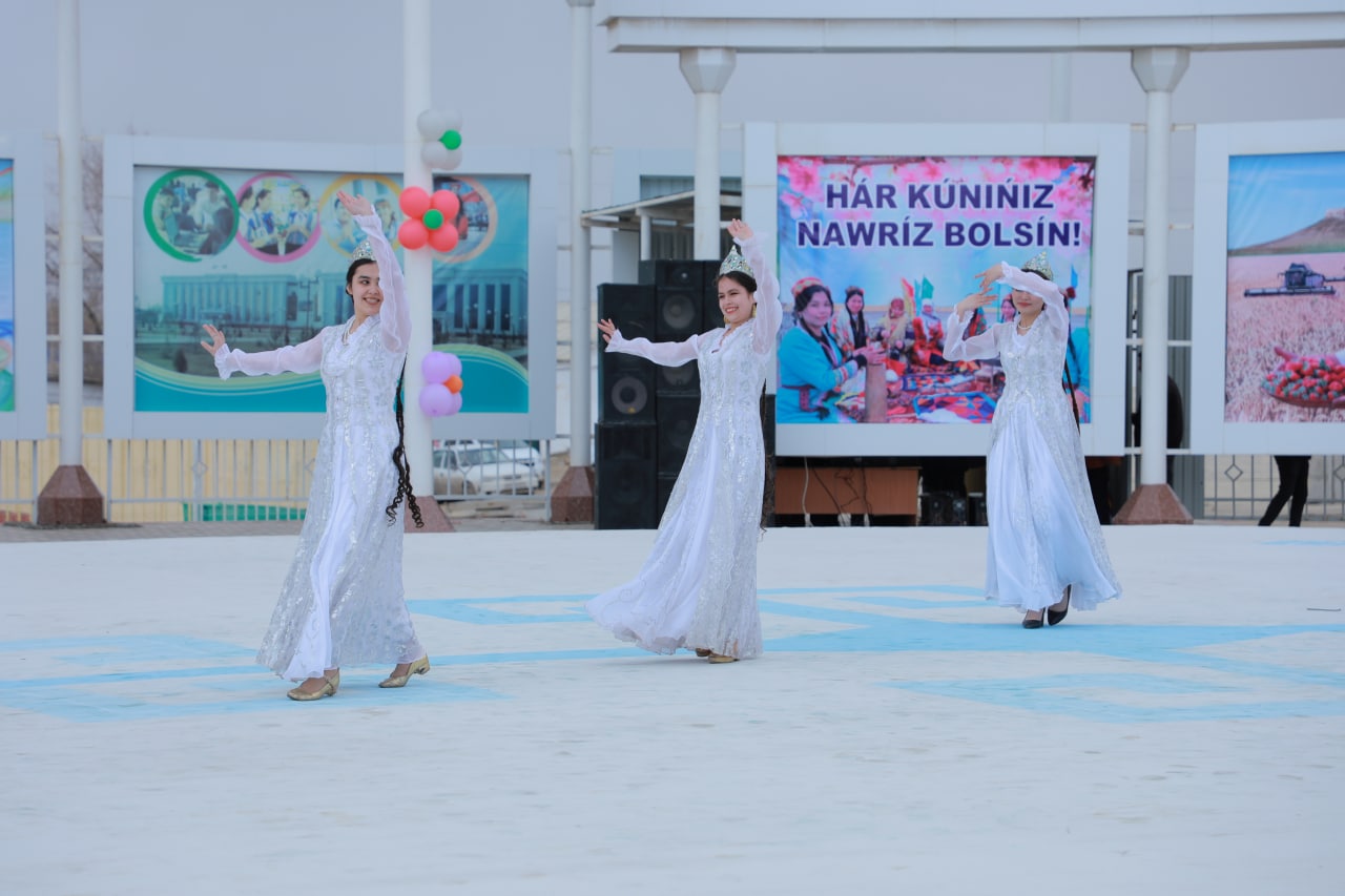 Бақсы-жыраўлар нама шалып, қосық айтса, миллий кийимлер кийген қыз-жигитлеримиз халқымыздыӊ миллийлигин, үрип-әдет дәстүрлерин көрсетип, байрам қатнасыўшыларына өзгеше қызығыўшылық ҳәм заўық бағышлады.