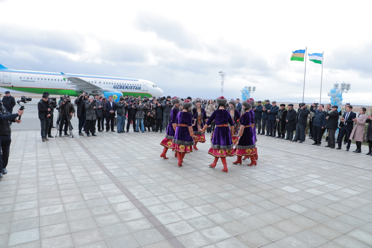 Дәслеп Мойнақ аэропортында мийманлар күтип алынды.