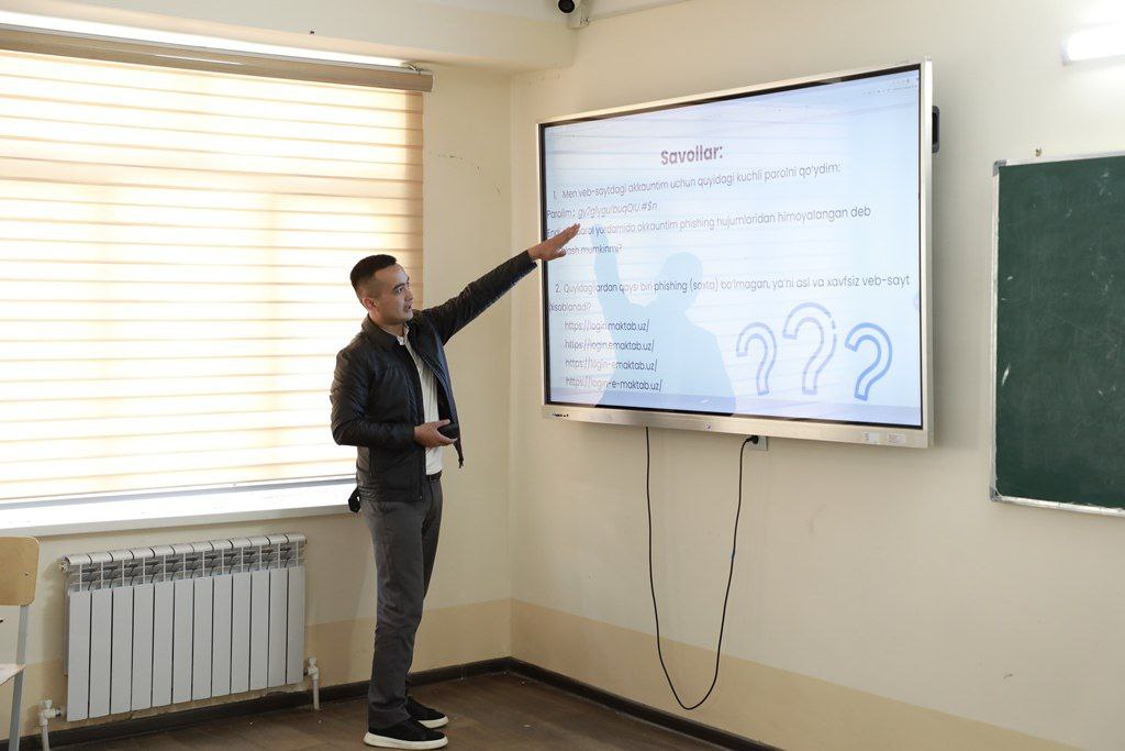 Семинар-тренинг даўамында Өзбекстан Республикасы Санлы технологиялар министрлиги жанындағы Санлы билимлендириў технологияларын раўажландырыў орайы ҳәм Киберқәўипсизлик университетинен келген қәниге тренерлер тәрепинен жасалма интеллекттиң билимлендириўде қолланылыўы, киберқәўипсизлик ҳәм муғаллимниң жуўапкершилиги, мобиль қосымша жаратыў тийкарлары бойынша тренинглер және әмелий шынығыўлар өткерилди.