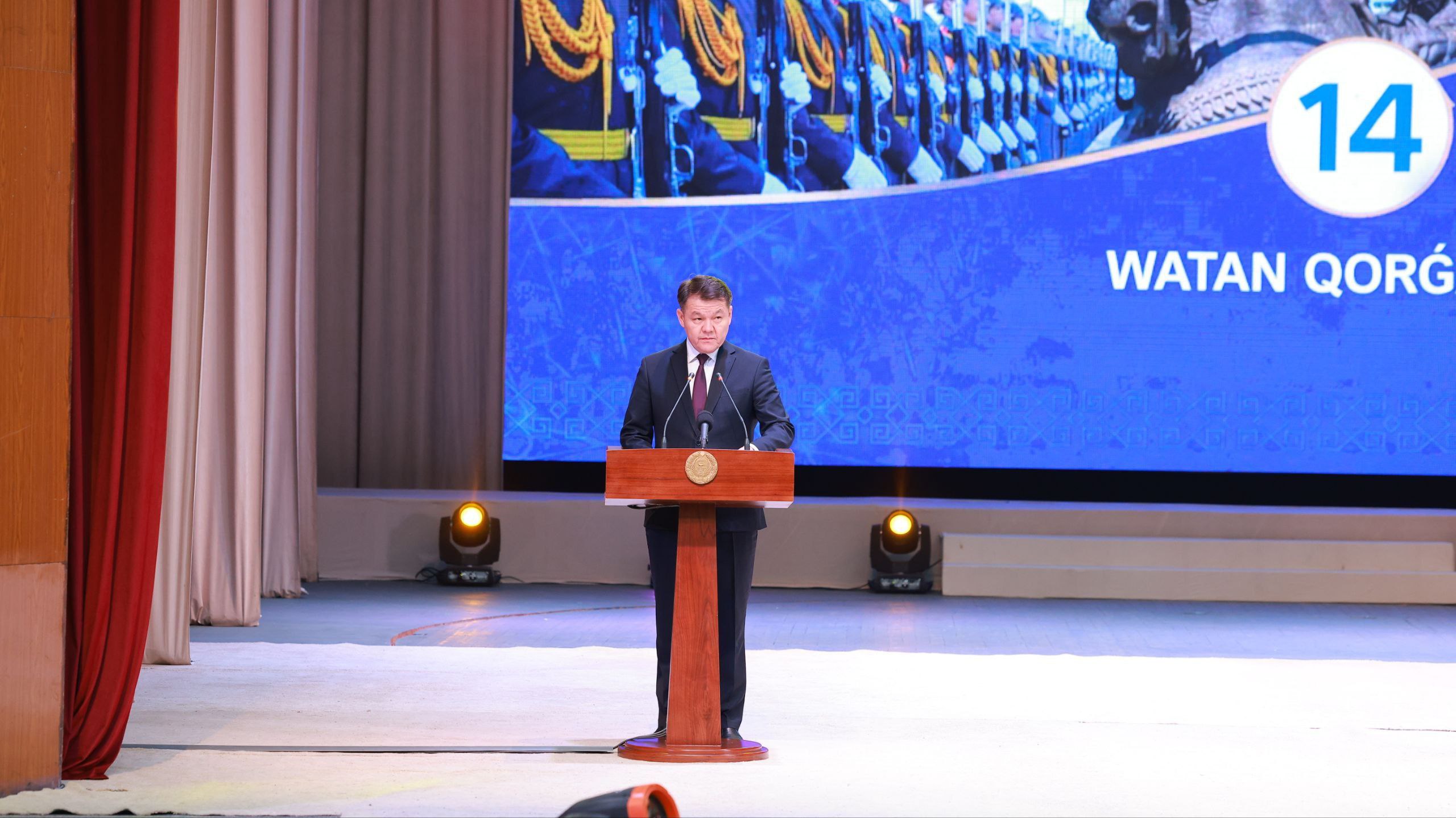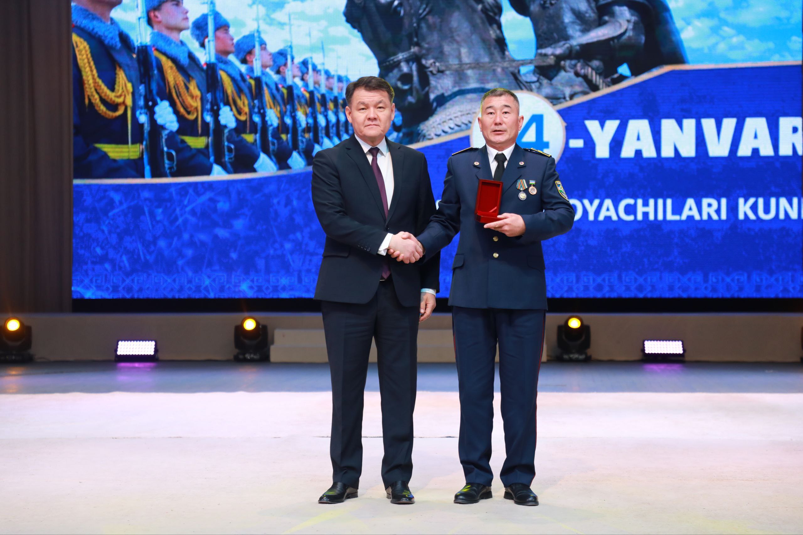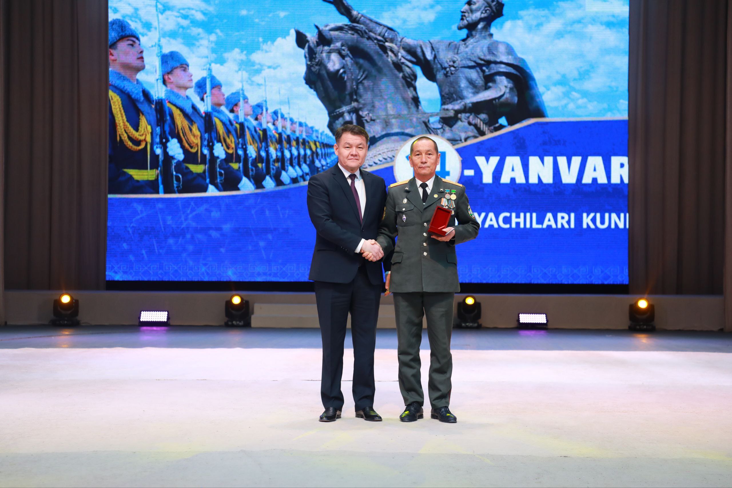 Бүгин Бердақ атындағы Қарақалпақ мәмлекетлик академиялық музыкалы театрында 14-январь – Ўатан қорғаўшылары күни ҳәм Қураллы Күшлеримиз дүзилгениниң 34 жыллығы мүнәсибети менен байрам салтанаты болып өтти.