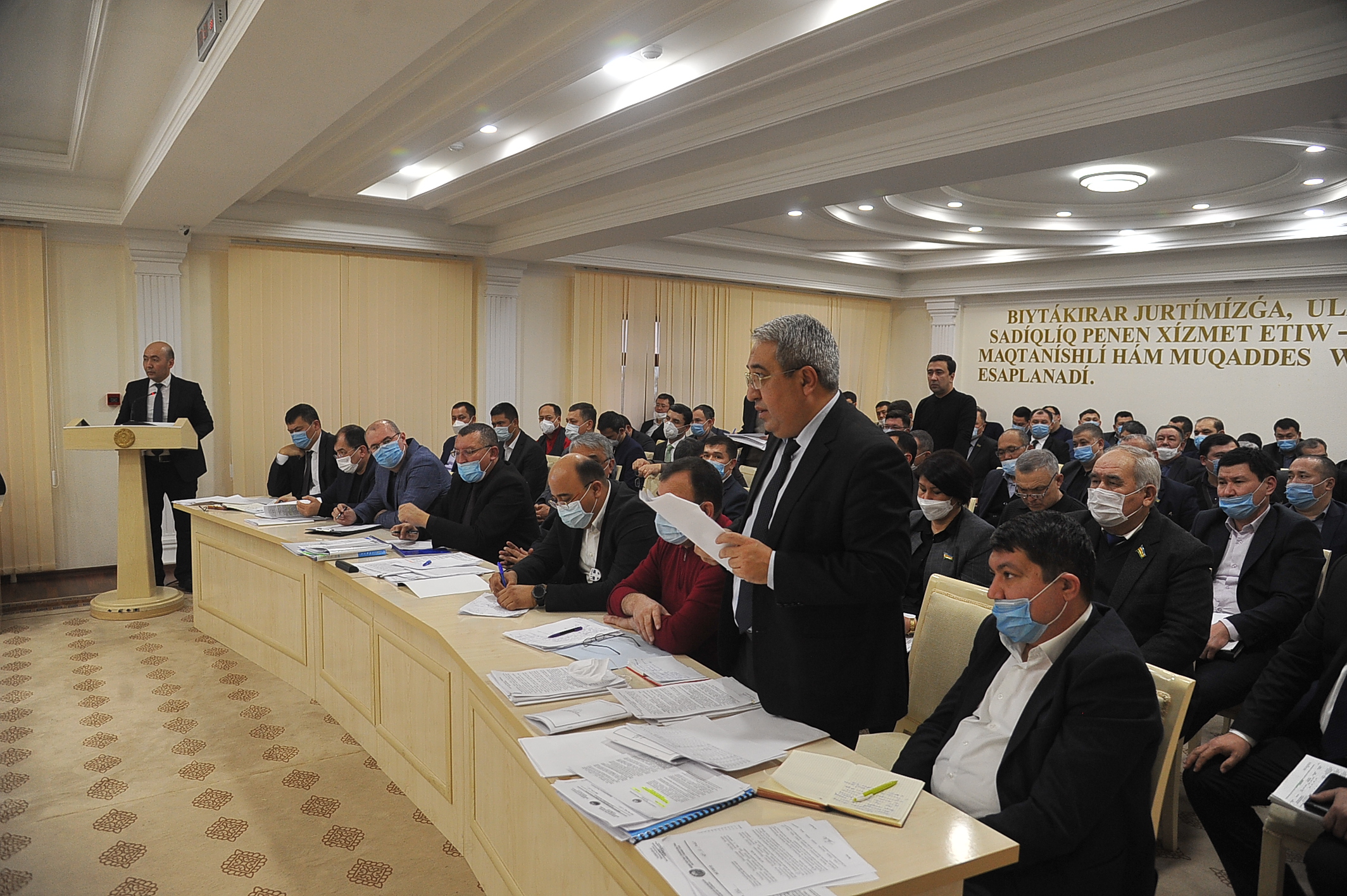 2021 йилнинг 7 январь куни Қорақалпоғистон Республикаси Жўқорғи Кенгесида Ўзбекистон Республикаси Президентининг 2020 йил 11 ноябрдаги “2020-2023 йилларда Қорақалпоғистон Республикасини комплекс ижтимоий-иқтисодий ривожлантириш чора-тадбирлари тўғрисида”ги ПҚ-4889-сон қарорида белгиланган вазифалар ижроси юзасидан амалга оширилаётган ишлар ва мутасадди вазирлик ва ташкилотлар фаолиятининг таҳлилий муҳокамасига бағишланган йиғилиш бўлиб ўтди.