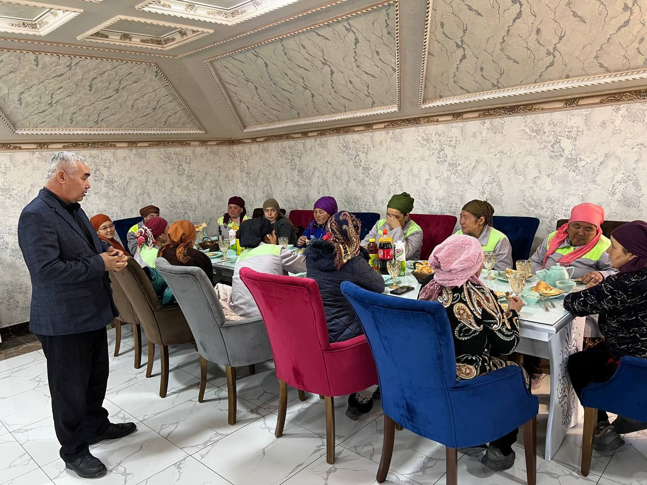Joqarǵı Keńes deputatları taraw wákilleri menen ushırasıp, suwıq kúnlerde kórsetip atırǵan pidayılıqları ushın minnetdarshılıq bildirdi hám kúndelikli xızmetin atqarıwda zárúrli ásbap-úskenelerin alıwda ámeliy járdem kórsetti. Bunnan soń deputatlar rayonlıq abadanlastırıw xızmetkerleri menen ushırastı. Áne usı insanlardıń miynetleri menen kóshelerimiz taza hám azada. Olardıń mashaqatlı miynetleri barqulla itibarǵa ılayıq. Biz ıssı úyimizde shańaraq aǵzalarımız benen dásturxan átirapında otırǵanımızda olar qalamızdıń tazalıǵı ushın ayanbay miynet etip atır. Deputatlarımız tárepinen taraw xızmetkerleri ushın túslik shólkemlestirilip, kewiller xoshlandı.