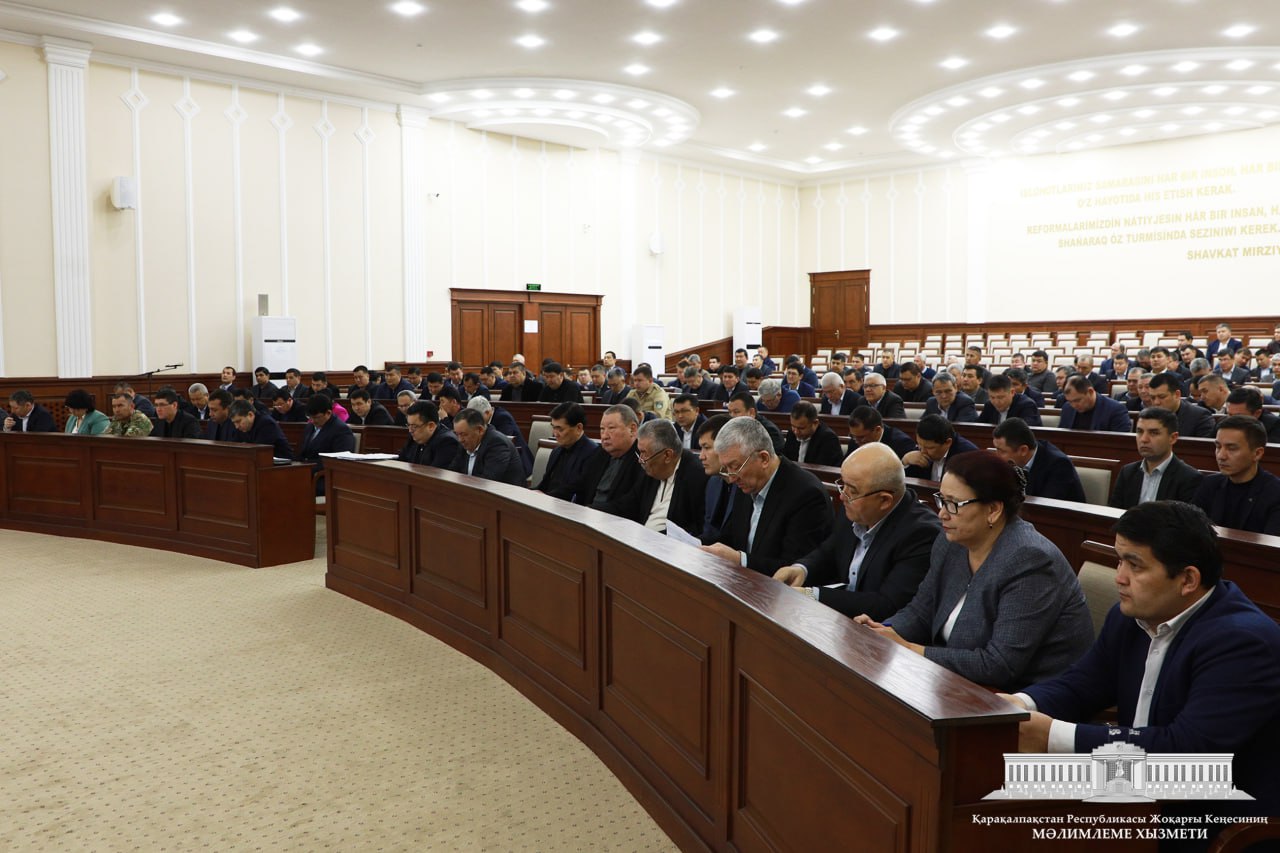 Búgin Ministrler Keńesiniń májilisler zalında Qaraqalpaqstan Respublikası Joqarǵı Keńesiniń Baslıǵı Amanbay Orınbaev basshılıǵında keńeytilgen apparat májilisi ótkerildi.