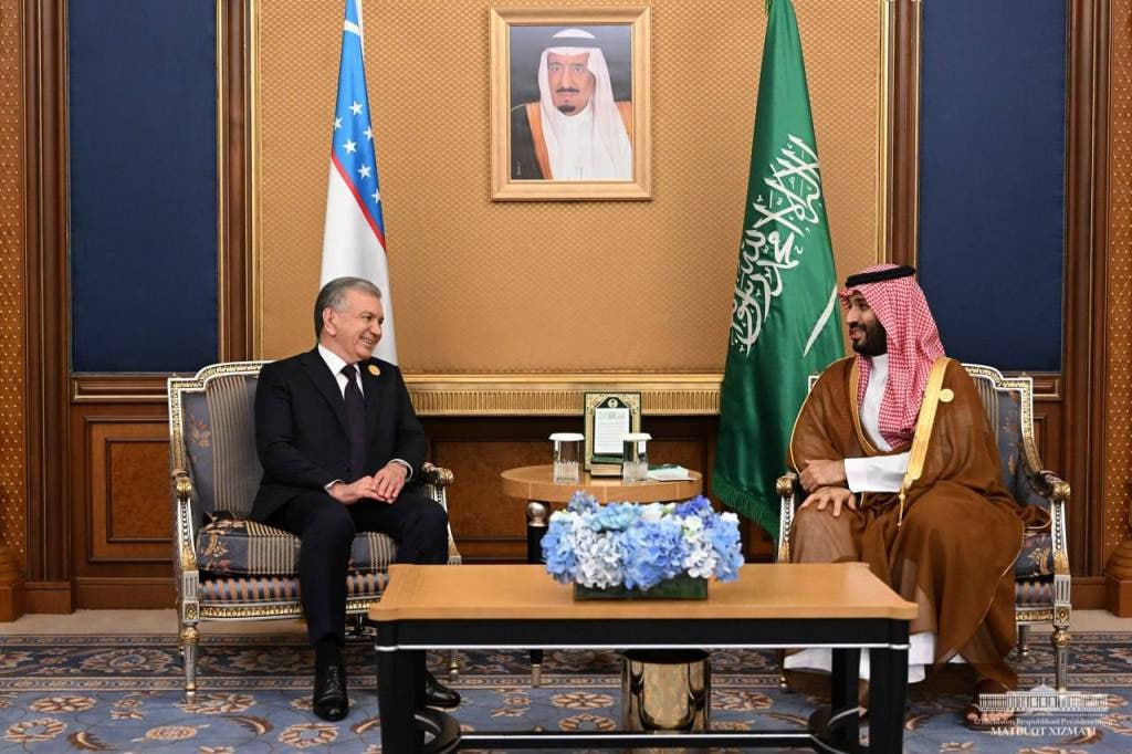 Ózbekstan Respublikası Prezidenti Shavkat Mirziyoev sammit sheńberinde Saudiya Arabstanı Patshalıǵınıń Miyrasqorı, Bas ministr Muhammad bin Salmon Ol Saud penen ushırasıw ótkerdi.