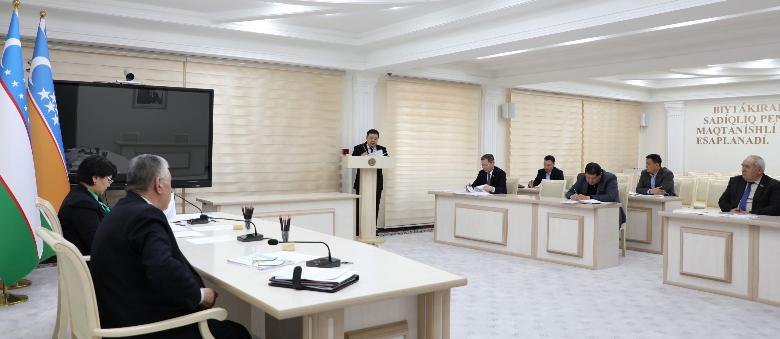 Májiliste ózgeris hám qosımshalar kirgiziliwi rejelestirilgen Qaraqalpaqstan Respublikasınıń 12 nızamı dodalanıp, mámleketlik basqarıw uyımları basshılarınıń pikir hám usınısları tıńlandı.