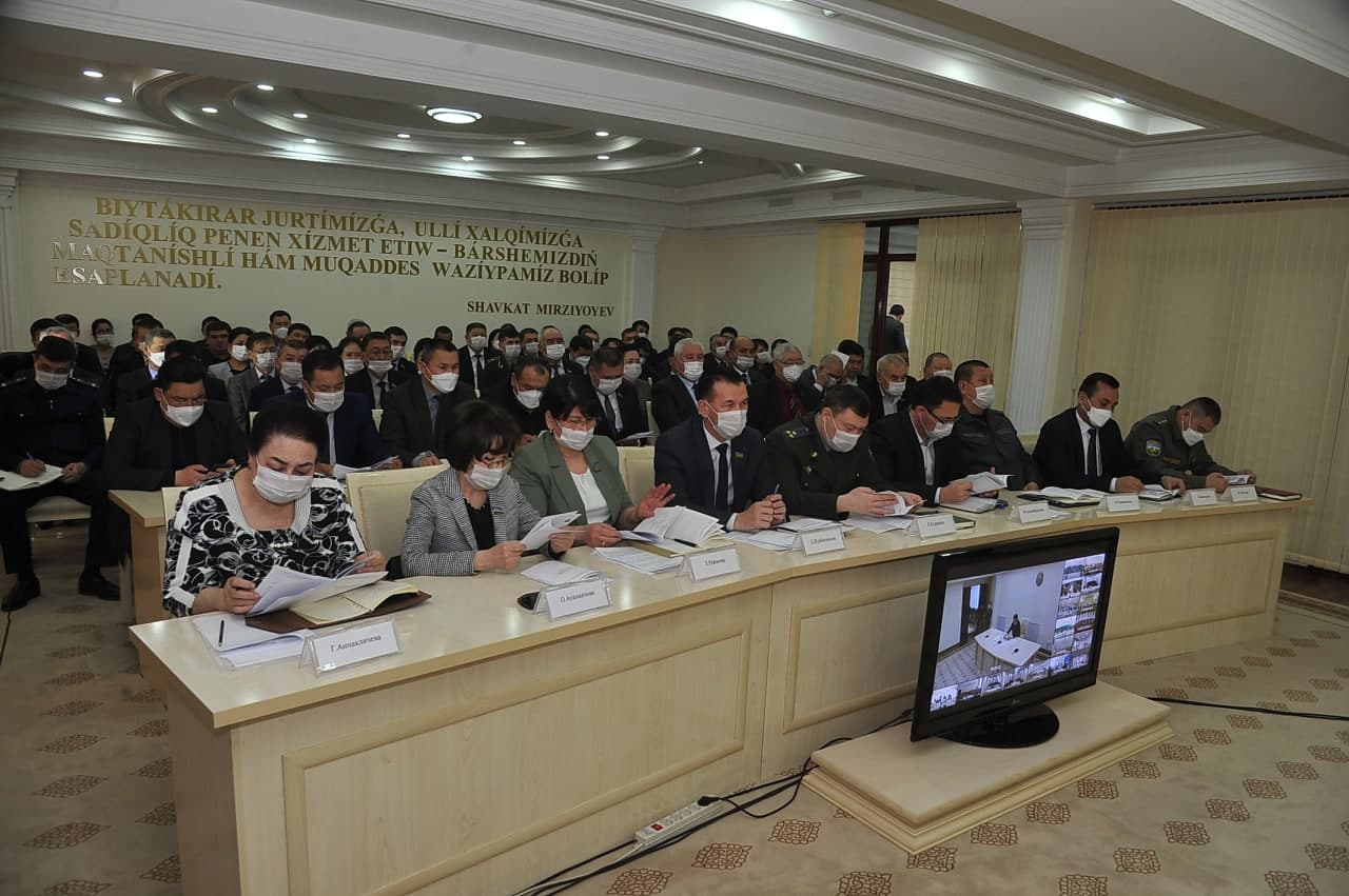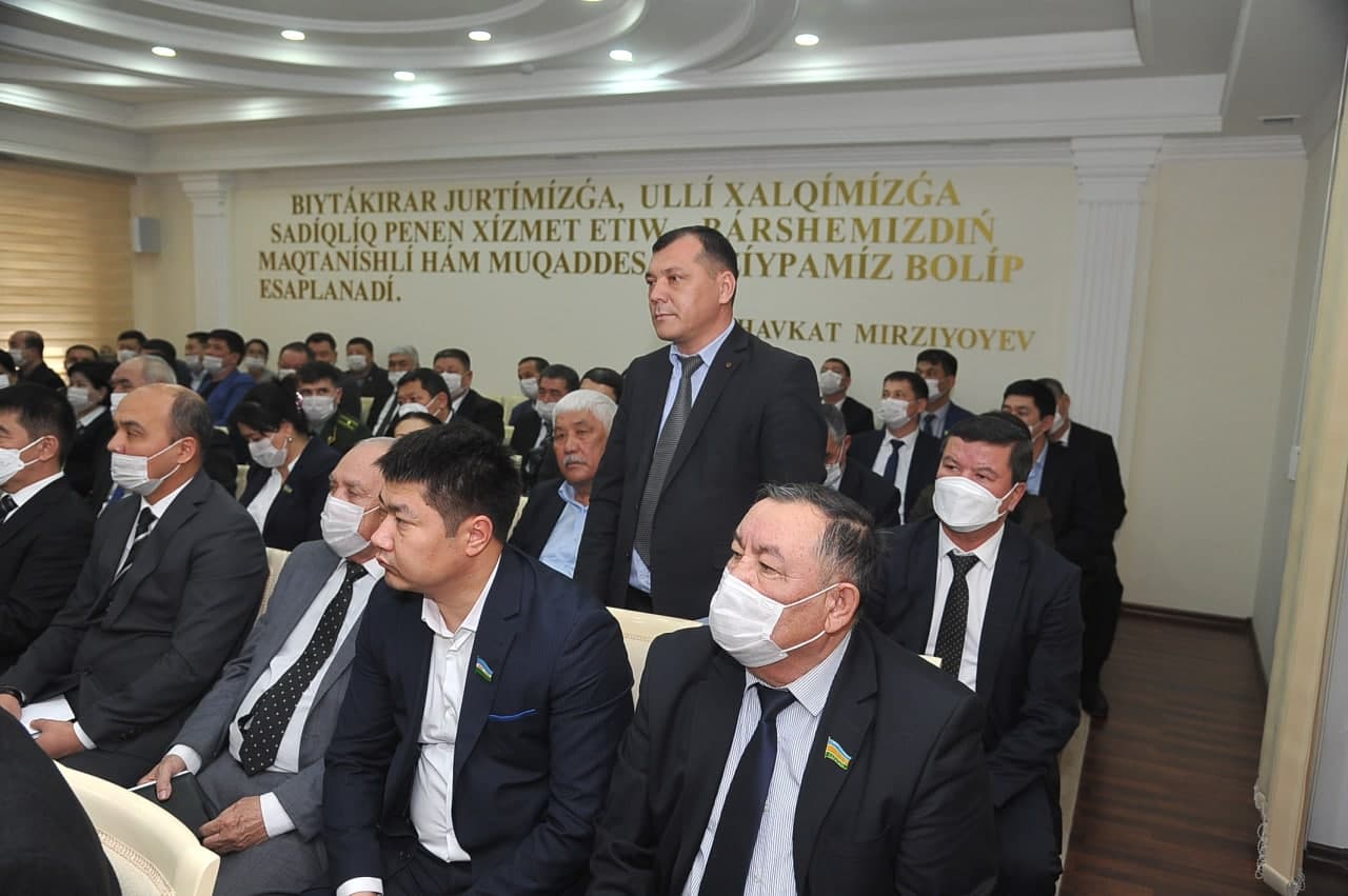 Videokonferencbaylanıs tárizinde ótken sessiyaǵa Ózbekstan Respublikası Oliy Majlisi Senatı, Qaraqalpaqstan Respublikası húkimeti aǵzaları, sektorlardıń hám tarawlardıń basshıları, ǵalaba xabar qurallarınıń wákilleri, sonday-aq, Joqarǵı Keńestiń deputatları qala hám rayon studiyalarında qatnastı.