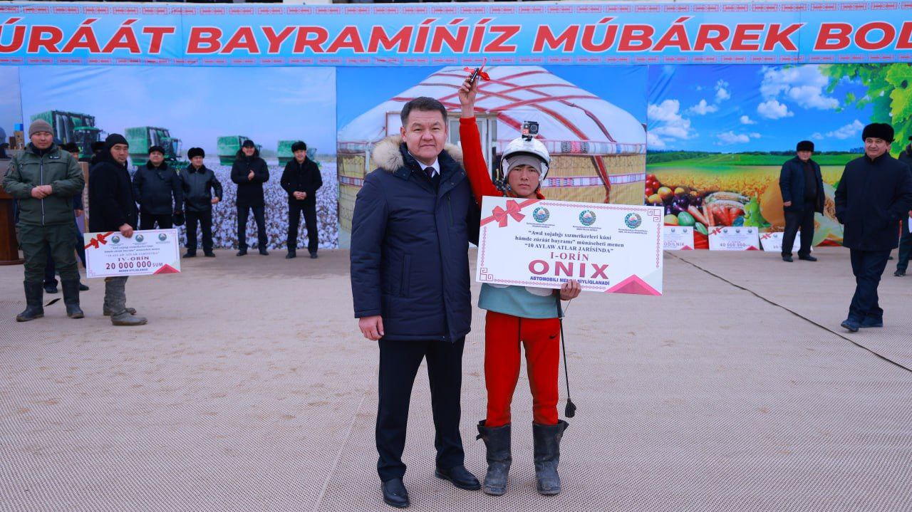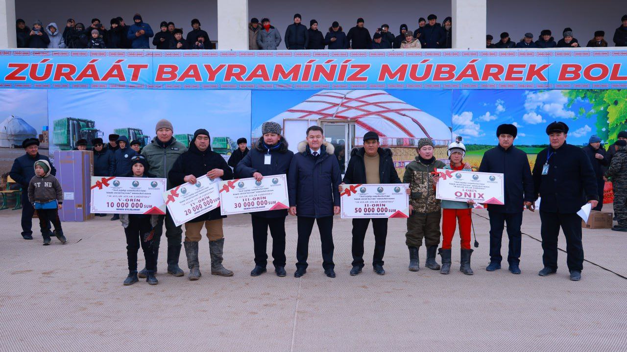 O‘n aylovga ot chopishi barchaning e’tiborida bo‘lib, poygaga birinchi bo‘lib kelgan Mo‘ynoq tumanidan Sarsen Talasovning oti bosh sovrinni qo‘lga kiritdi. Unga Prezidentimizning sovg‘asi "Onix" avtomashinasi topshirildi. Keyingi o‘rinlarni egallaganlar: 2-o‘rinni olgan Nukus tumanining chavandoziga 50 mln. so‘m, 3-o‘rinni olgan Qonliko‘llik chavandozga 30 mln. so‘m pul mukofoti va qimmatbaho sovg‘alar berildi.